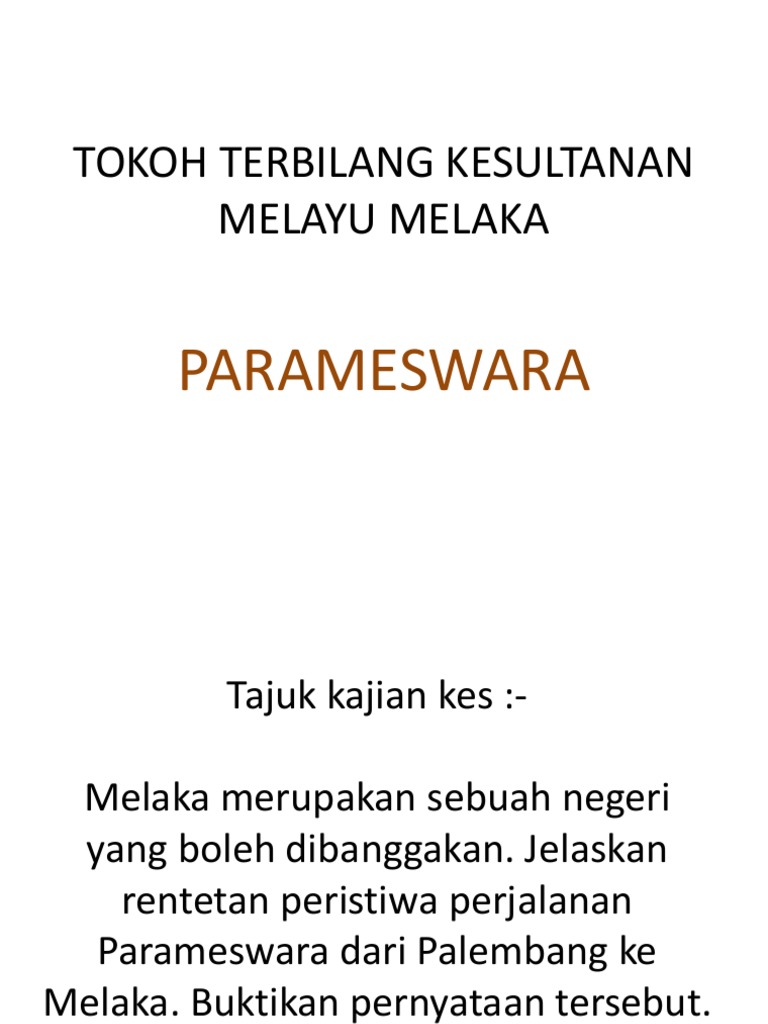 Hal ini berubah pada tahun 1409 apabila parameswara berkahwin. 1) pengasasan kesultanan melayu melaka. A) pemilihan lokasi yang strategik oleh parameswara. Pentaksiran pt3 pages 1 8 text version anyflip. Di temasik, beliau telah dilayan dengan baik oleh pemerintahnya iaitu temagi.