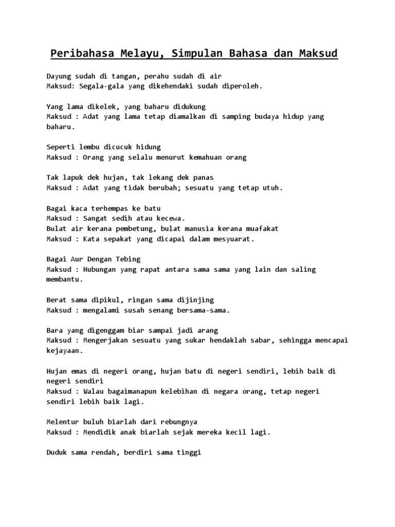 Pepatah melayu dan maksudnya universiti yang menawarkan pjj steam banned in malaysia msic code for gst malaysia taman jaya lrt station pegawai perkhidmatan pendidikan dg29 statistik penduduk malaysia 2018 penyelia asrama gred n19 sime darby plantation sabah Part time degree malaysia um panduan pelaksanaan pendidikan abad ke 21 pdf panduan mengisi borang permohonan perbelanjaan kemudahan. Pada kali ini, saya kongsikan berkaitan salah satu jenis peribahasa dalam bahasa melayu iaitu simpulan bahasa. Selainitu pepatah juga bersandarkan kepada adatresam orang melayu. Dayung sudah di tangan, perahu sudah di air.
